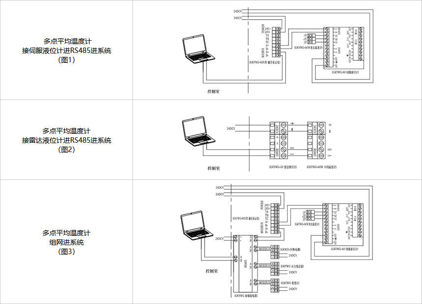 GKYWG-60W多點平均溫度計采用多點測溫原理,測量化工儲罐不同高度點的多個溫度值,實現(xiàn)液面上溫度、液面下溫度、平均溫度等值通過RS485 MODBUS協(xié)議或RTU方式進控制室PLC或DCS系統(tǒng),實現(xiàn)多溫度參數(shù)監(jiān)測控制儲罐設備溫度,可以與伺服液位計、雷達液位計連接遠傳至控制室系統(tǒng)。