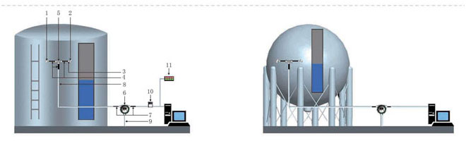 兩探頭傳感器安裝在用戶要求的大罐報警點上。兩個探頭傳感器需要安裝在同一水平線上。安裝探頭傳感器之間避免有焊縫在,每個探頭傳感器位置也應盡量遠離焊縫。安裝位置選用扶梯附近安裝。