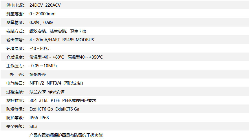 可單獨測量液位或界位,也可同時測量液面界面,適用面廣